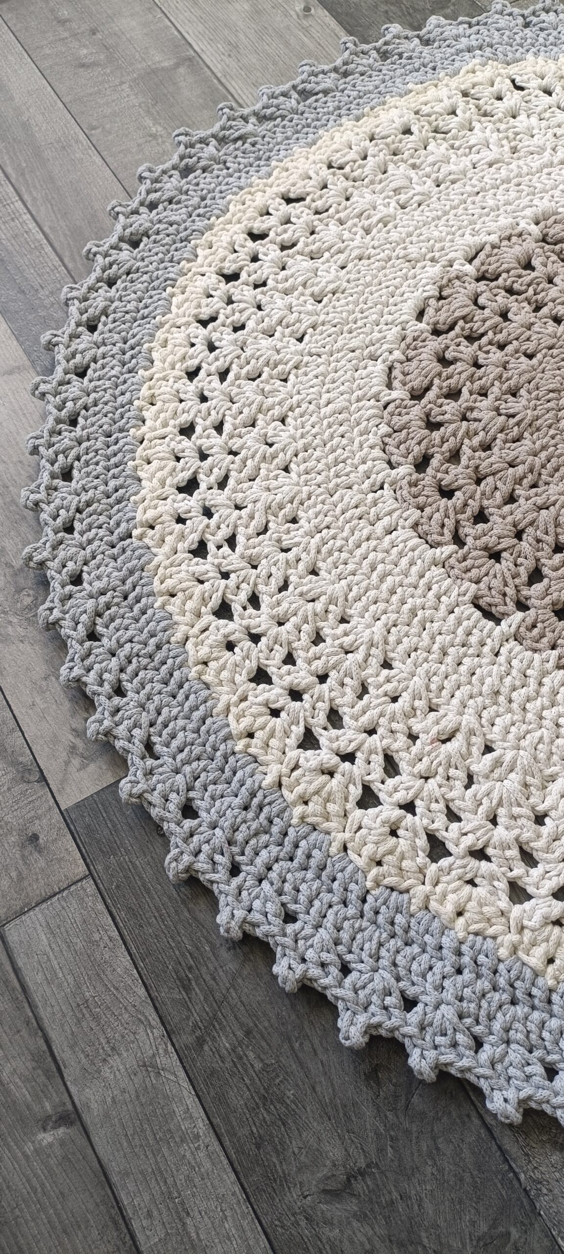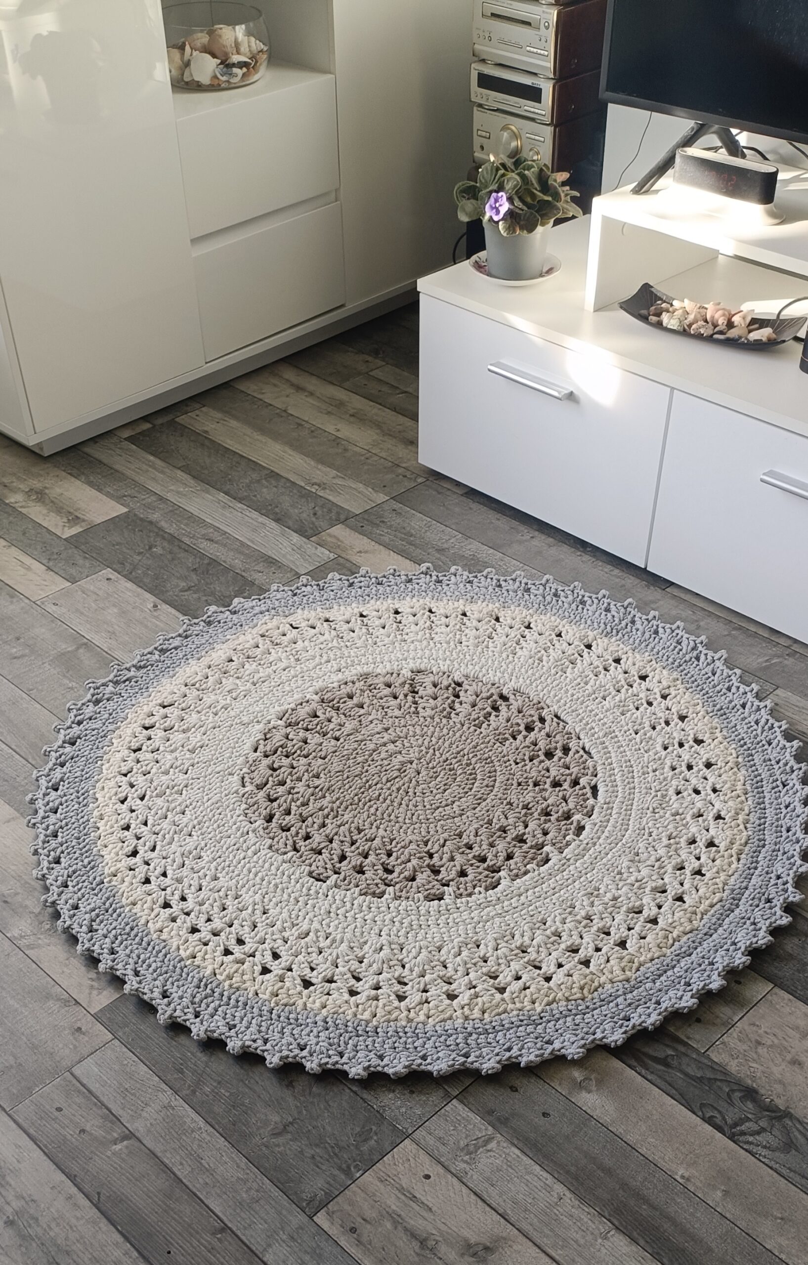 Odkryj magię rękodzieła i postaw na unikalny akcent w swoim wnętrzu! Ten okragły dywan jest kwintensencja stylu boho i skandynawskiego minimalizmu. Został starannie wykonany na szydełku, co garantuje jego niepowtarzalną fakture i doskonałą jakość wykonania.
