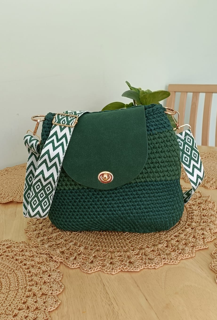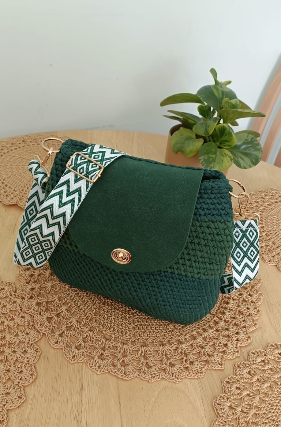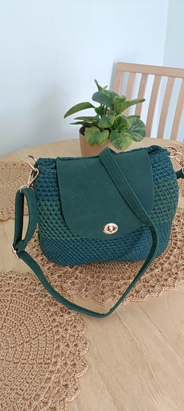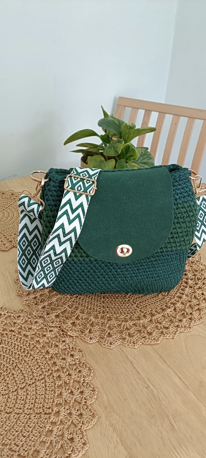 Poszukujesz torebki, która idealnie pasuje do Twojego nastroju? Nasza zielona torebka na szydełku jest odpowiedzią! Ręcznie pleciony korpus z trwałej przędzy poliestrowej jest nie tylko stylowy, ale też niezwykle pojemny. Klapka z ekoskóry zapewnia wygodę i bezpieczne zamknięcie.